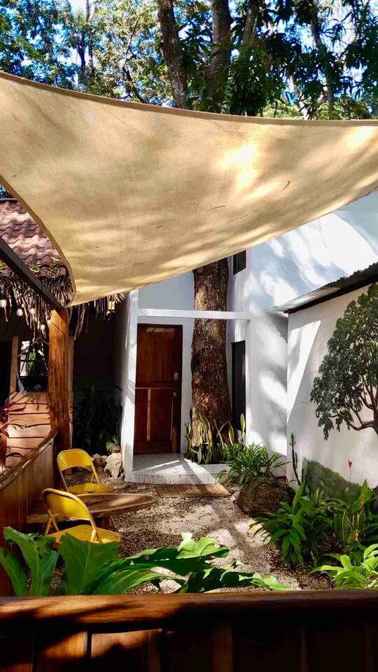 Welcome to IONA Villas Treehouse, a truly unique retreat nestled in a vibrant community environment. We are just a 4-minute walk away from the beautiful beaches of Samara. The Treehouse is a lovingly designed space, crafted by our team of local artisans. Wake up to the sounds of tropical birds and even howler monkeys as they search for breakfast amongst our mango trees. Step out onto your private balcony for morning coffee. Staying at IONA Villas is like visiting friends in a tropical paradise.